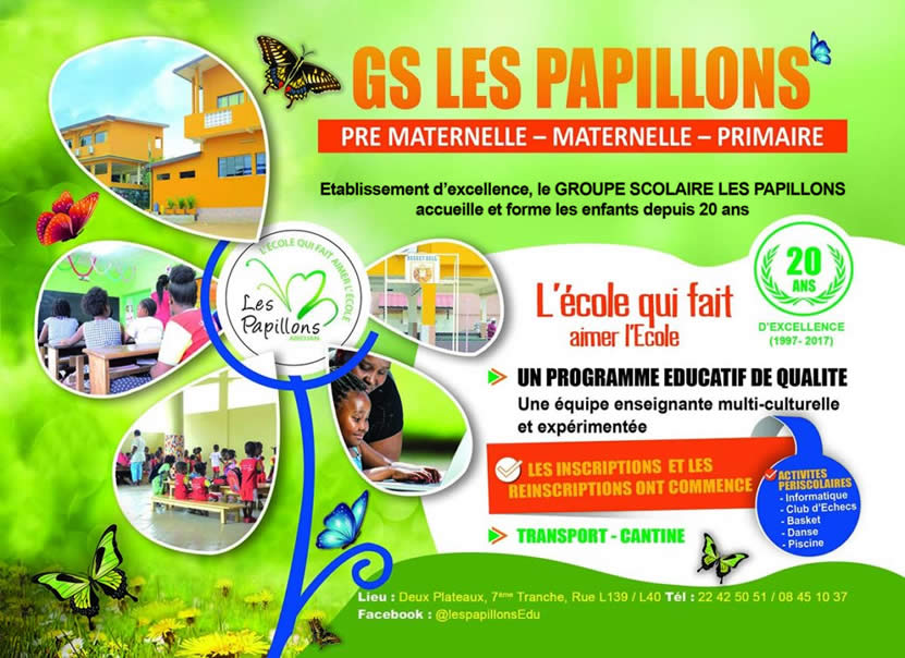 Le GS les Papillons informe les parents que l'administration reste ouverte toute la période des vacances scolaires du lundi au vendredi, le matin et l’après-midi .